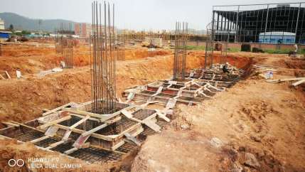 虽然因为近日来的阴雨天气厂房施工需要暂停,但是每次的雨水都在捣完混凝土之后到来,恰好令混凝土的养护更加充足。即使是下雨,此时看来是“天公作美”呀!